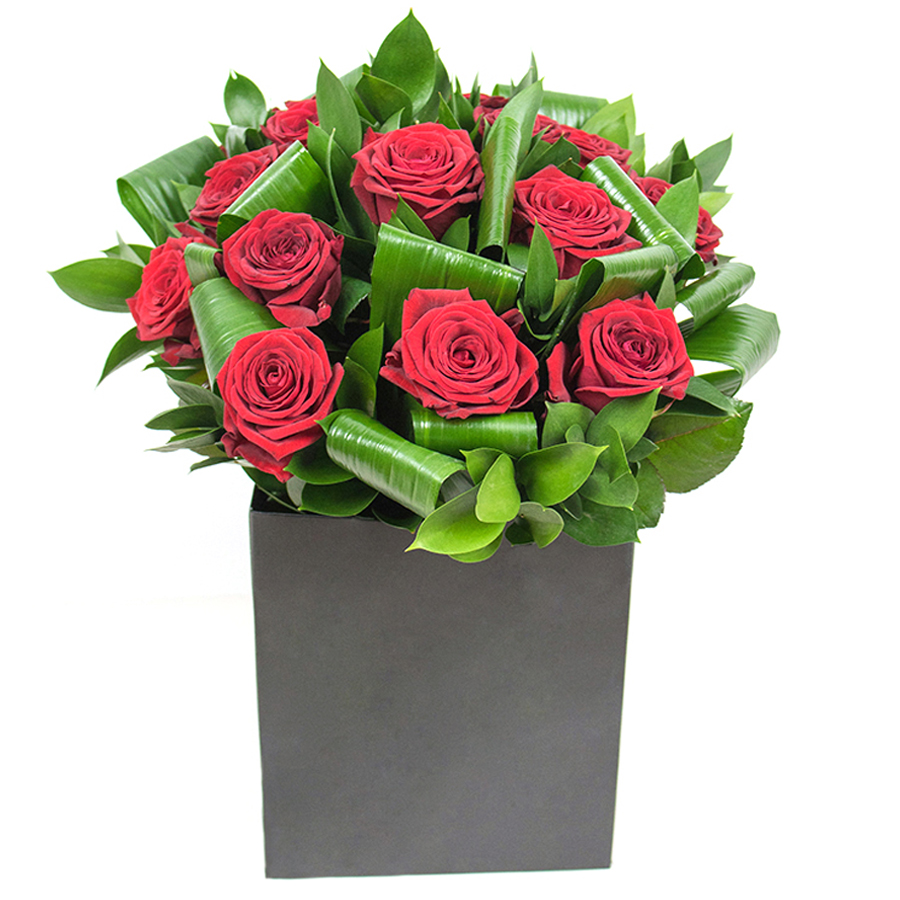 Celebrate the art of gifting with our luxurious bouquet featuring vibrant red roses, graceful aspidistra leaves, and delicate ruscus. This arrangement is thoughtfully crafted to bring a touch of sophistication and charm to any room. Each bloom is hand-selected for its exquisite quality, ensuring fresh, vibrant colors and long-lasting beauty.